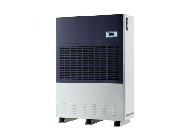 工業(yè)用除濕機(jī)通過(guò)風(fēng)機(jī)將潮濕空氣抽入機(jī)器內(nèi)部,通過(guò)壓縮機(jī)制冷將蒸發(fā)器降溫至露點(diǎn)以下,潮濕空氣經(jīng)過(guò)蒸發(fā)器在表面凝結(jié)成水,匯集至接水盤后,流入水箱中,干爽空氣經(jīng)冷凝器重新加熱由出風(fēng)口排出,這樣不斷循環(huán)將室內(nèi)濕度降低。